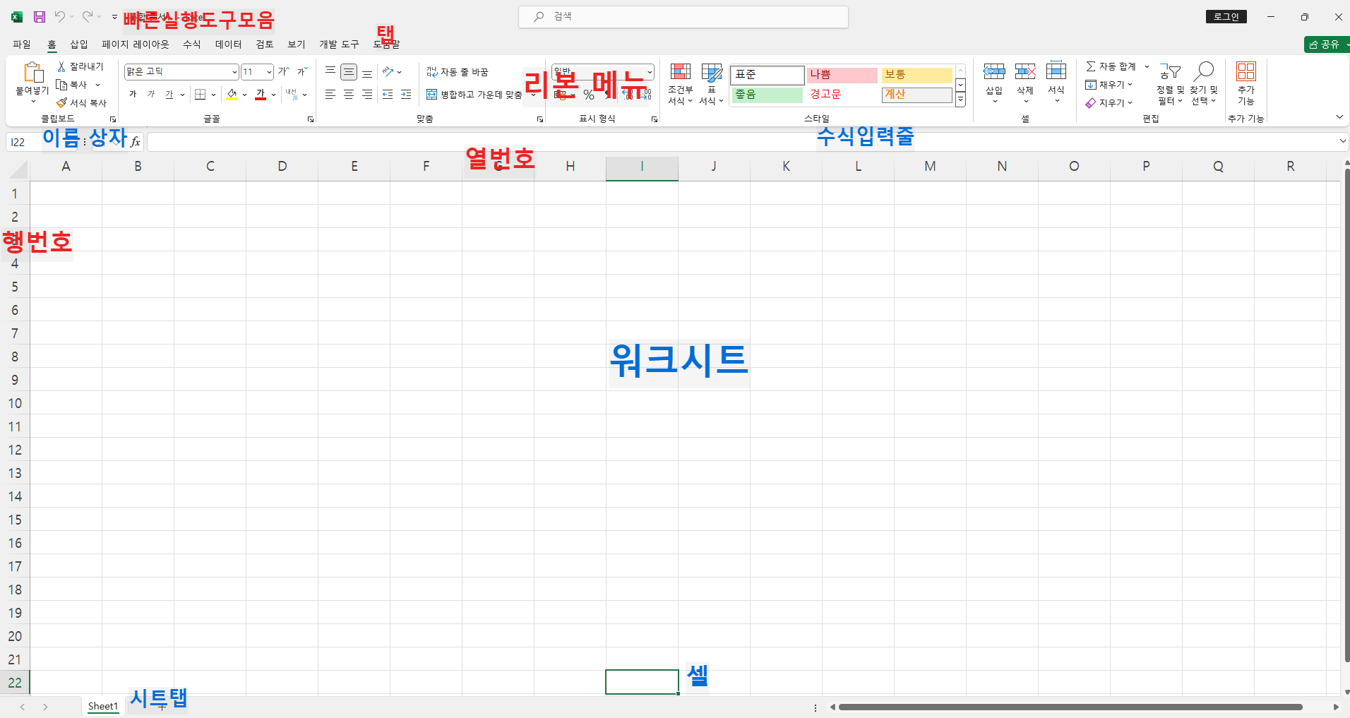 엑셀의 기본 인터페이스를 이해하는 것은 효율적인 작업의 첫걸음입니다. 화면을 실행하면 다양한 도구와 기능이 있는 인터페이스가 보입니다. 아래에 있는 기본 인터페이스 구성요소들을 숙지하면, 처음으로 사용하는 사람들도 쉽게 탐색하고 활용할 수 있습니다.