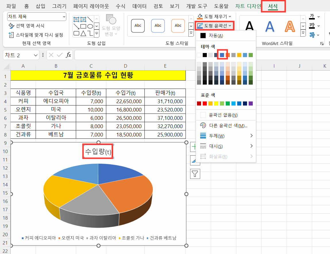 3. 차트 제목 도형 스타일 적용