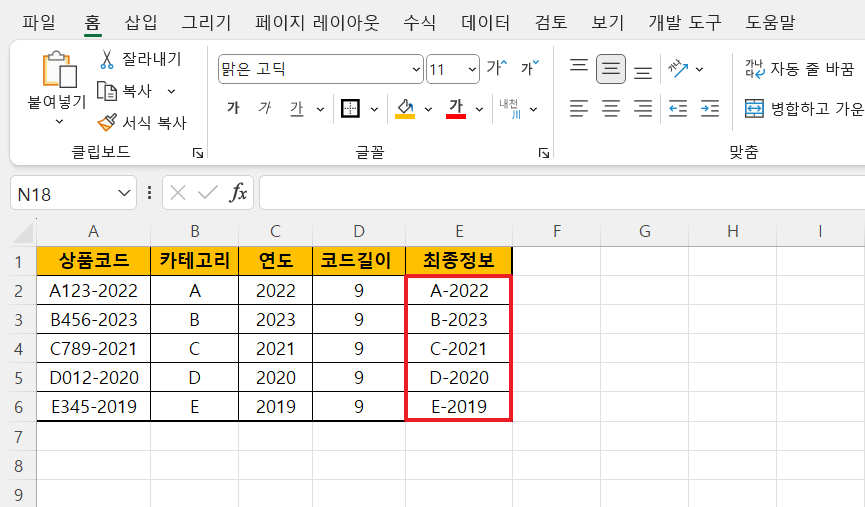 | 상품 코드 | 카테고리 | 연도 | 코드 길이 | 최종 정보 |